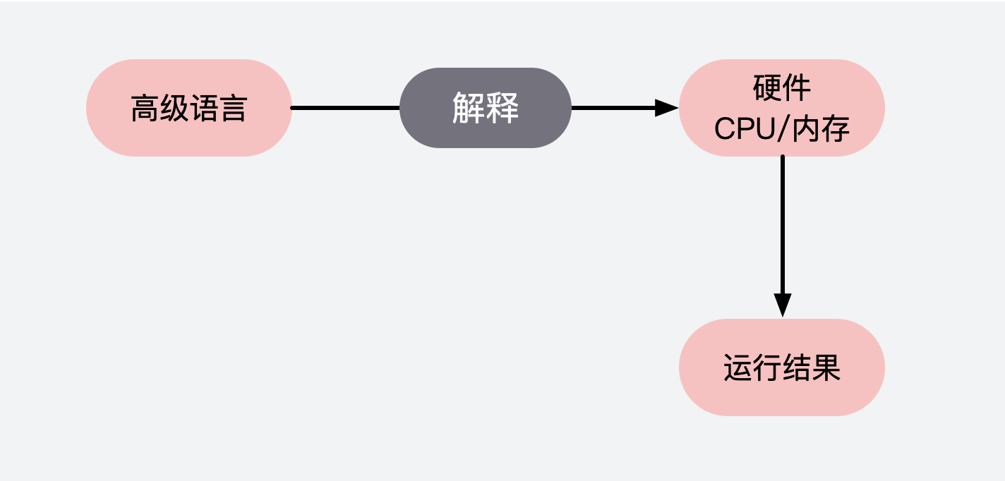 解释器是一个直接从源代码中执行指令的程序,常见的解释语言有(Python,PHP),解释型语言往往有更加灵活的语法相对于编译型语言,但是他们通常更加低效,因为每次执行的时候都需要解释。